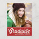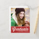 Announce your graduation to family and friends with this customizable graduation postcard. It features a white retro script typography on a red background. Personalize this red graduation announcement postcard by adding your photo, name and school name. This photo graduation announcement postcard is perfect for high school or college graduations.