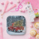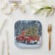 Red Retro Truck With Christmas Tree In Snowflakes Paper Plates