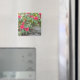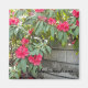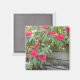 A pretty magnet for a nature/flower lover. Red rhodo's growing against a brick wall.