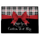 This product design features an illustrated red ribbon and tartan plaid pattern in black, white, and red. With its unique classic graphics, it makes a modern chic large gift bag with personalized message for birthday, Christmas, or any other special occasions!