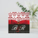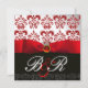 RED RIBBON RUBY WHITE BLACK DAMASK MONOGRAM INVITATION