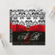 RED RIBBON RUBY WHITE BLACK DAMASK MONOGRAM INVITATION
