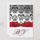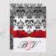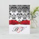 RED RIBBON SILVER BLACK DAMASK MONOGRAM INVITATION