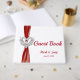 Red Ribbon Silver Swans Wedding Guestbook