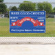 Shout out to the community that your school is drug free and supports Red Ribbon week. Text reads: Say No To Drugs, Choose To Refuse. Customize your school banner with your own text message. Perfect for elementary school, middle school and high school. Great community banner. Design features a red, white and blue theme with stripes, stars and a red ribbon. Modern blue design.