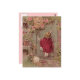 Vintage Red Riding Hood illustration with and soft pink roses. Wolf in grandma's clothing peeks out through the window as Red waits to come in.