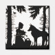 This vintage image silhouette depicts the fairy tale Little Red Riding Hood. The little girl with her basket is kneeling in the woods with the Wolf. See my store Art by MAR for matching products with this design.