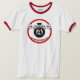 Alchemy Logo on gray shirt with red rings around the neck and sleeves.