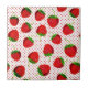Ceramic tile in a scattered pattern of red ripe strawberries on a red and white pin dot background