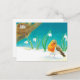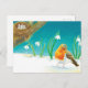 Red Robin Bird & snowdrops Illustration Postcard
