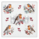 This design features a watercolor illustration of red robin and holly branches with red berries.