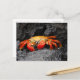 The crab Grapsus grapsus is one of the most common crabs along the western coast of the Americas. It is known variously as "red rock crab", "abuete negro", and, together with other crabs such as Percnon gibbesi, as "Sally Lightfoot". It is found along the Pacific coast of Mexico, Central America, South America (as far south as northern Peru), and nearby islands. It is one of the many charismatic species that inhabit the Galápagos Islands, and is often seen in photos of the archipelago, sometimes sharing the seaside rocks with the marine iguanas (Amblyrhynchus cristatus).