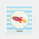 Red Rocket Space Ship; Light Blue Stripes Paper Napkins