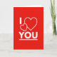 This Valentine's Day card uses a solid red background that instantly feels warm and romantic ❤️. In the center, white letters read “I” and “YOU,” and the missing word is shown as a large white heart outline between them. The lettering looks simple and neat, with thick, easy-to-read shapes that stand out clearly against the red. Inside the big heart, there’s a smaller white heart outline, like a little extra note of closeness tucked into the main message. Everything is placed right in the middle, so your eyes go straight to the “I [heart] YOU” message without any distractions. It feels meaningful because it says what you mean in a direct, honest way, whether it’s for a partner or someone you care about deeply 🥰. It’s the kind of card that helps you share Valentine’s Day sentiments in a simple, heartfelt way.