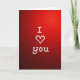 This design shows a deep red background that fades from darker red around the edges to a brighter red near the center. In the middle, the message reads “I ❤️ you” in white, with the heart symbol standing in for the word “love.” The letters have a smooth, slightly flowing look, and a soft shadow makes them seem like they’re gently floating above the red. There aren’t any characters or extra objects, which keeps all the attention on the message itself. The strong red color and the simple words make it feel direct, tender, and easy to mean. It’s the kind of card you can give to a partner or someone close when you want to say a lot without writing much. Share it to pass along a little Valentine’s Day love ❤️.