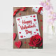 This design shows a white card on a dark wooden table with the words “Happy Valentine’s Day” printed in raised red letters across the center. Small red heart shapes are scattered around the card, adding a sweet touch without feeling busy. A red satin ribbon curls in from the top left, catching the light as it trails across the scene. In the upper right, there’s a white gift box decorated with tiny red hearts and tied with a red ribbon. Near the lower left, two red felt hearts with white stitching sit side by side, giving the layout a cozy, friendly feel. A deep red rose rests in the front, with layered petals that draw your eye and set a romantic mood ❤️. A few shiny heart pieces on the wood add a little sparkle to the warm setting 💕. Hope it helps you share a little extra love with someone special this Valentine’s Day.
