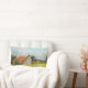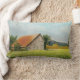 This lumbar pillow features an image of a sturdy red-roofed barn in a sunny meadow originally painted in soft pastels by Jayne Wilson.