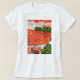 T-shirt featuring colorful artwork, European cityscape - red and terracotta tiled rooftops of Prague. Mixed media artwork - tissue paper collage, ink pen, acrylic markers and watercolor