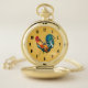 Here is a cheerful, sunny pocket watch with a red, yellow, blue and green rooster.
