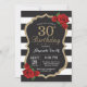 Red Rose 30th Birthday Invitation Gold Glitter