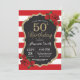 Red Rose 50th Birthday Invitation Gold Glitter