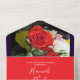 A lovely floral wedding invitation with a red rose, just tear of the RSVP request so handy.