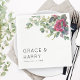 Personalized red rose and eucalyptus wedding napkins with simple typography. Design features the bride and groom names and wedding date under a canopy of red rose bloom, eucalyptus leaves and greenery. If you would like this design for matching products, please message me.