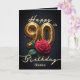 Red Rose and Gold Filigree Number 90th Birthday Card