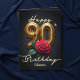 Celebrate a lifetime of memories with this stunning greeting card. The front features a luxurious gold “90”, elegantly framed with delicate detailing. A vibrant red rose, symbolizing love and admiration, adds warmth and charm. The recipient’s name appears in flowing gold script, creating a truly personal keepsake.