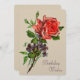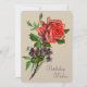 5” x 7” pearl shimmer greeting card with a vintage image of a beautiful red rose in full bloom, two rose buds and violets on beige. Sentiment reads, “Birthday Wishes.” The back is cream with an image of red rose buds and a customizable sentiment that reads, “May every birthday bring you joy.” See matching gift tag, label, rectangular sticker and custom-cut vinyl sticker. See the entire Birthday Invitation collection in the INVITES | Invitations & Cards section.