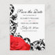 Red Rose Black Flourish Wedding Save the Date Postcard