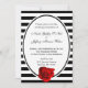 Red Rose Black & White Stripes Wedding Invitation