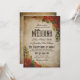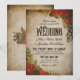 A vintage wedding invitation with red roses, eucalyptus, and fern, with vintage fonts and a distressed look. Suitable for themed weddings, such as vintage, old West, rustic romance, and more.