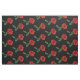 This elegant floral fabric design features a repeating pattern of single red rose flowers with green leaves set on a pure black background. The perfect idea for gardeners!