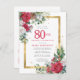 Red Rose Gold Holly 80th Birthday Invitation Postcard