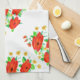 Designer hand towel for kitchen or bath with red art rose pattern. Stylish home decor gift.