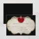 Red Rose Heart on Black Metallic RSVP Card