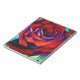 with original design of red English rose macro flower from original watercolour artwork painting by Sacha Grossel Art. Large close up of crimson flower with blue highlights inspired by love and passion.