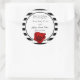 Red Rose on Black & White Stripes Wedding Classic Round Sticker