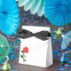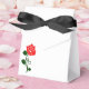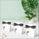 Bring a touch of elegance to your next event. A simple white bag tied up with a black bow ribbon. The bag has a small red rose on the front corner and a larger red rose of the back of the bag. These will make the perfect addition to a beautifully set table filled with your special treat for guests.