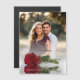 This beautiful magnetic card is will let your friends and family know to save the date for your upcoming wedding. It features a romantic design with a long stemmed red rose with waves and ripples as it reflects in a pool of water overlaid across the bottom of your photo. The top of the card features the caption "Save the Date" written in fancy black script lettering. Your names appear just above the rose, and overlaid across the very bottom are the wedding date and location.