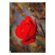Red rose on colorful background in autumnal garden, painting effect
