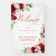 Welcome guests to your birthday party with this elegant floral design. Two lush red and white floral arrangements are placed in diagonal corners. Welcome is written in a large trending font. The remainder of the text is a classic upright font and very easy to customize. This item is part of the Red Rose and Pink Peony collection. It contains professionally designed templates for designing your invitation suite, welcome signs and party supplies.