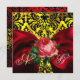RED ROSE RIBBON GOLD YELLOW BLACK DAMASK MONOGRAM INVITATION