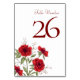 Red Rose Romantic Wedding Table Number
