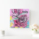 Red Rose Roses Watercolour Floral Flowers Flower Square Wall Clock