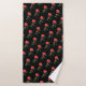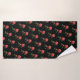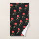 traditional floral pattern design of many red watercolor roses with green stems and leaves on black towels
