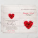 Heart shaped red rose on wood background book fold program. You will have to manually fold these program card. Matching products available. Search "hhn01" to see all products with this elegant / romantic red rose design. 4" x 9" rack card wedding program also available in our collection.