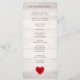 Heart shaped red rose on wood background wedding program. You will have to manually fold these program card. Matching products available. Search "hhn01" to see all products with this elegant / romantic red rose design. 8.5" x 11" book fold card wedding program also available in our collection.