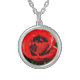 Red Rose with Dew Drops Silver Plated Necklace